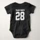 Cute football jersey bodysuit for baby. Mum and dad love sports. It's only natural the baby should too. Cute baby bodysuit in red and white colour. You can customise the name and player number on the front and back of the jersey. Not just for football fans. Any type of sports fan will appreciate this design. Baseball, basketball, soccer, ice hockey and more.