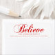 Elegant and classy return labels for Christmas (Xmas) Holiday greeting cards / envelopes. Red BELEIVE white background. Modern white letters for family name and address. Letter colour and font can be changed.