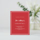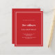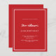 A modern, elegant and invitation. A red background decorated with a white frame. Personalise and add a name and details. White text.