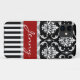 Bold Red, Black and White Damask pattern personalised with your name, text or monogram. Design by Elke Clarke© Graphics licensed for use. Change the colour of the ribbon to the colour you want or leave as is.