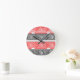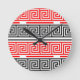 Red White Black Greek Key Fret Pattern Design Round Clock