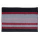 Red, white, and black stripes on natural wool fabric.