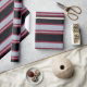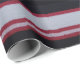Red, white, and black stripes on natural wool fabric.