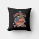 Patriotic red white and blue striped apple "All American Teacher" black decorator pillow.