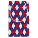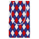 Red, White and Blue Argyle, 2-GIFT BAG-An allover diamond shaped pattern created in patriotic red, white and blue colours. The diamond shapes alternate in all three colours. The digital stitching is white. This design is suitable for certain holidays as well as many other occasions through out the year. The pattern coordinates with others in a complete red, white and blue party theme. You can find argyles, chevrons and even homespun to coordinate, mix or match. Choose any size of Zazzle gift bags available.