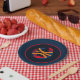 Deep Blue rims circle the plate with a Deepest Blue background and a modern art basketball graphic/logo. Seven inches in size and made of paper to coordinate for mix & match. Customise or buy as is.