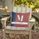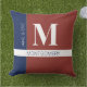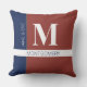 Decorative monogram pillow to match your home decor with custom name, surname and monogram in red, white and blue.