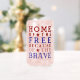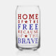 This eye-catching patriotic drinking glass features a vibrant design in bold red, white, and blue colours. It is adorned with the inspiring quote, "Home of the Free because of the Brave," showcased in beautifully crafted decorative typography that adds a touch of elegance. Perfect for toasting during celebrations of your love for the country, this drinking glass glass makes an excellent accessory for Independence Day and 4th of July parties.