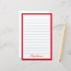 Printed with red borders in solid white background with blue lines on it. Personalise as you wish by adding your own name and choose a different background colour if you wish! If you do not want to add any name, simply delete the name template!