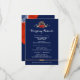 Nautical Boutique Co.'s red, white, and blue wedding details enclosure card features modern script and traditional block typography in navy blue on a rich navy blue background. It's accented with a nautical rope tied in an infinity knot and ships wheel set in red and blue anemones. #Nautical #Wedding #CoastalWedding