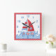 Personalise this sailboat wall clock perfect for a child's room or beach or lake vacation house with a monogram if desired. Just edit in the easy Zazzle text editor. Cute red white and blue sailboat on red polka dot background created in part with graphics by Kristi W purchased at www.digiwebstudio.com.