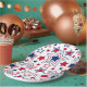 9 inch paper plate with red, white and blue stars paper plates. For that patriotic holiday barbecue you're planning. Matching cups and napkins available.