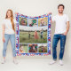Red white and blue blanket printed with seven of your photos in a collage framed by a pattern of stars.