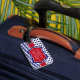 This monogrammed navy blue, red, and white stripes and polka dots pattern luggage tag is fully customisable and would give your luggage a chic and modern tag that would make it easy to spot at the airport. If you need help, or want something changed, email your request to niteowlstudio@gmail.com.