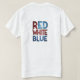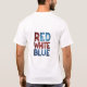 The "Red White Blue" t-shirt design showcases a striking arrangement of the American flag's colours in a modern, artistic style. The design features bold red and white stripes interspersed with blue elements, possibly including stars or abstract shapes, creating a visually appealing and patriotic look. This vibrant design is perfect for celebrating national pride and can be worn on occasions like Independence Day or sporting events.