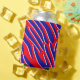 Cool down with bold style. This Red, White & Blue Tiger Stripe Beverage Cooler wraps your favourite drink in fierce, patriotic flair. The vivid red background with electric blue tiger stripes edged in white delivers wild energy with a nod to USA pride.