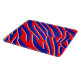 Add a fierce flair to your kitchen with the **Red, White & Bold Tiger Stripe Glass Cutting Board**. Featuring striking **blue tiger stripes edged in white across a bold red background**, this glass board is as functional as it is visually powerful.