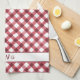 Red & White Buffalo Plaid Three Initial Monogram Tea Towel