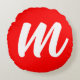 Red White Calligraphy Monogram Initial Letter Round Cushion