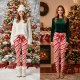 Red White Candy Cane Diagonal Stripes Bow Leggings