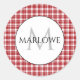 Red White Checks Plaid Monogram Classic Round Sticker