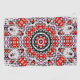 Circular kaleidoscope made from an image of red and white chess, the ten parts of it resemble chess or large pixelated.
