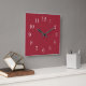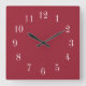 A wine red clock with white numbers, simple cheerful design with elegant style and charm. You can use the customise feature and select a different colour background if you want. You can even change the size, style or colour of the numbers, though it's a bit trickier. Click customise - edit - select all. Then click the button with the curvy f - you can then choose any font style you like. Be careful if doing this ... not all font styles will look even or perfectly centred. You might like it that way though :) This clock in round or square styles is great for kitchen, living room, bedroom, family room, kids' rooms, studio; makes a perfect gift for friends and family for birthday, Christmas, housewarming or anytime you please.
