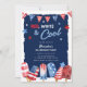 Light up your 4th of July birthday bash with our 'Red, White & Cool' party invite! Boasting a rustic dark blue backdrop, our design showcases a stunning white font party template, adorned with vibrant red, white and blue bunting, stars and patriotic ice popsicles. Timeless yet trendy, these invitations are as unique as they are unforgettable!