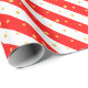 Red and white diagonal stripes with golden polka dots gift wrapping paper.