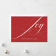 Send heartfelt holiday wishes in style with this elegant corporate Christmas card. Featuring the word Joy beautifully displayed in white script calligraphy and set on a dark red card, this business holiday card makes a lasting impression. The reverse side offers space for your custom holiday greeting and company logo, printed in simple dark grey typography on a clean white background. Ideal for corporate holiday mailings, client appreciation, employee gifts, and business-to-business holiday outreach, this card is a timeless way to share your gratitude and seasonal cheer.