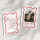 Red White Elegant Wavy Border Photo Wedding Thank You Card