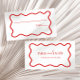 This is a Red White Elegant Wavy Border Wedding Flat Place Card!