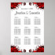 Red & White Floral 9 Wedding Tables Seating Charts
