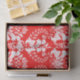 Elegant white on changeable red background, vintage floral damask seamless pattern.