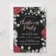 Red White Floral Lights on Black Christmas Party Invitation