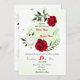 romantic red and white flowers with some green leaves botanical wedding invitation