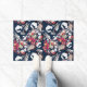 Red, white flowers on blue. doormat