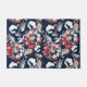 Red, white flowers on blue.