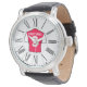 Football shirt design with a red and white shirt. Add name and number of your choice. The watch face has Roman numerals.