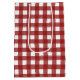 This design features a cheerful gingham check plaid pattern in traditional red and white.