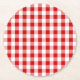 Red & White Gingham Plaid Checks Rustic Wedding Round Paper Coaster