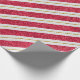 Wide red and white stripes glittery stripes are set on the diagonal with a thin gold glitter stripe between. Bright, cherry and fun Christmas wrapping paper for the holidays!