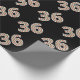 This simple, fun wrapping paper design features the number "36" having a Christmas themed red, white, and green stripes pattern, on a black coloured background. Wrapping paper like this might be used when wrapping gifts being given to celebrate some thirty sixth event that also happens to fall on December 25th (Christmas Day), such as somebody’s 36th birthday or a couple’s 36th wedding anniversary. [~Z0000408]
