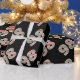 This fun and simple wrapping paper design features the number "98" having a Christmas themed green/white/red stripes pattern, on a black coloured background. Wrapping paper like this might be fun to use when wrapping gifts being given to celebrate some ninety eighth event that also happens to fall on December 25th (Christmas Day), such as somebody’s 98th birthday or a couple’s 98th wedding anniversary. [~Z0000408]