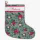 Red White Green Christmas Flowers Personalised Large Christmas Stocking