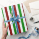 Red, White, Green Christmas Style Lined Pattern Wrapping Paper