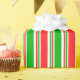 This Christmas and holidays themed design features a striped pattern having colours like red, white, and green. It might be fun to use wrapping paper like this when preparing presents or gifts being given to celebrate a birthday, a wedding, an anniversary, or some other event.