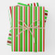 These fun Christmas inspired designs feature striped patterns having colours like green, white, and red. Festive wrapping paper sheets like these might be fun to use when preparing presents or gifts being given in celebration of Christmas.