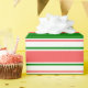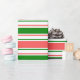 This Christmas-themed design features a green, white, and red coloured stripes pattern. It might be fun to use wrapping paper like this when wrapping gifts being given to celebrate a birthday, a wedding, an anniversary, or some other event.