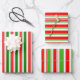 Red, White, Green Coloured Christmas-Themed Lines Wrapping Paper Sheet